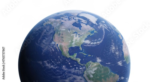 © arif, Fototapeta premium Earth globe view focusing on North America against a white background