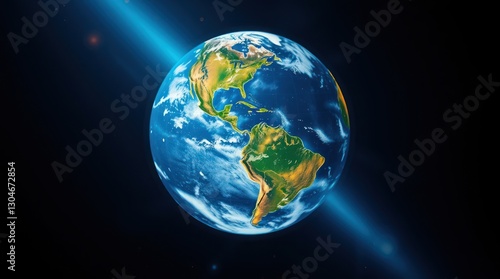 © Andi, Fototapeta premium Earth Globe View From Space with Light Beam and Dark Background
