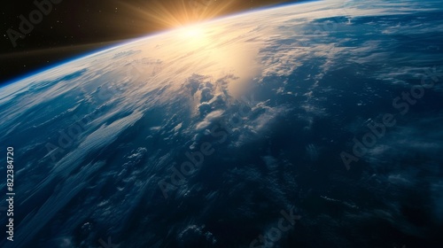 Fototapeta premium Earth horizon, thin blue atmosphere and dark expanses of outer space