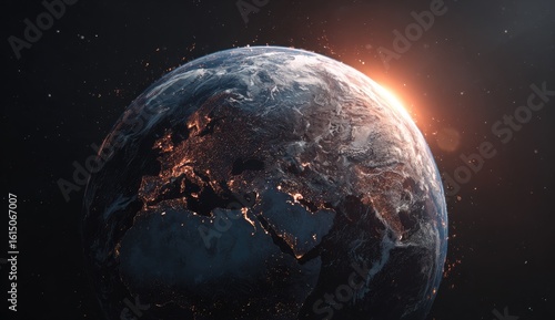 Fototapeta premium Earth, illuminated from space, with city lights visible