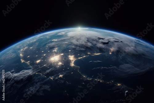 Obraz premium Earth in Space. Planet Globe on Black Background for Science Wallpaper