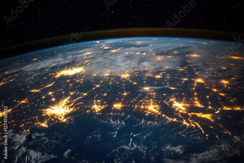 Obraz premium Earth Lights Shine Brightly at Night, Seen from Space with Global Connectivity Theme