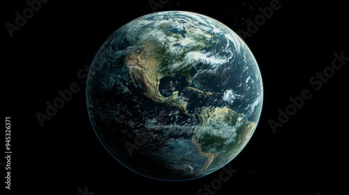 © jamrut, Fototapeta premium Earth-Like Planet: Close-up of an Earth-like planet with continents, oceans, and visible weather systems