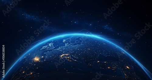 Fototapeta premium Earth Night Global Connection Technology Network Digital Communication 3D...