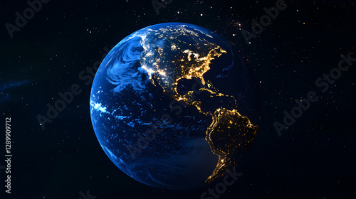 © ma, Obraz premium Earth night view with glowing lights of Americas