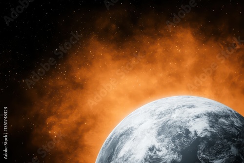 Obraz premium Earth Overlooked by Fiery Nebula in the Depths of Space