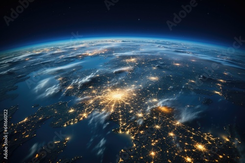 Obraz premium Earth planet at night. Abstract wallpaper. City lights on planet.