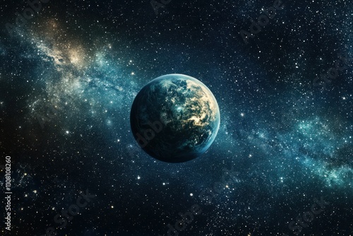 Fototapeta premium Earth Planet In A Starry Galaxy Background