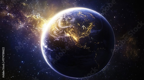 © Berkah1789, Obraz premium Earth Planet Night Lights Space Galaxy Stars
