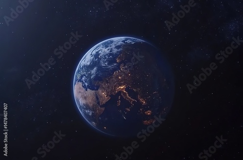 © Buat, Fototapeta premium Earth Planet Nighttime View From Space