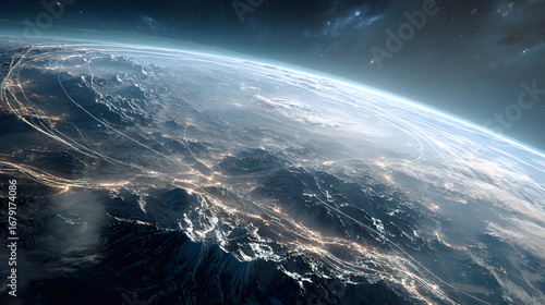 © aiden, Fototapeta premium earth, planet, space, globe, world, map, blue, 3d, night, sun, global, sphere, atmosphere, sea, ocean, universe, light, sunrise, clouds, sky, astronomy, horizon, view, black, nature