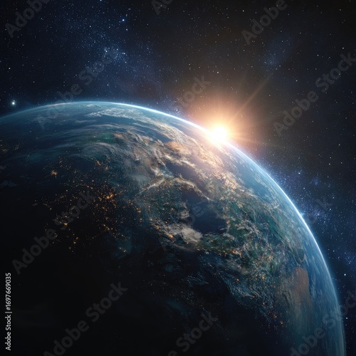 Fototapeta premium Earth rising, sunrise from space (1)