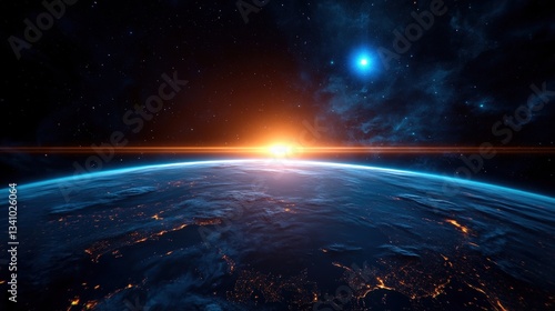 Obraz premium Earth rising, sunrise view from space
