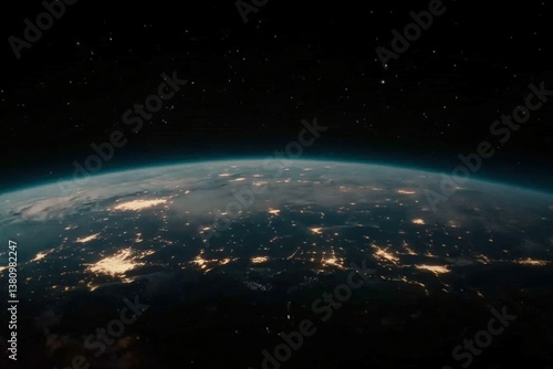 Obraz premium Earth rotating in space showing night city lights and stars