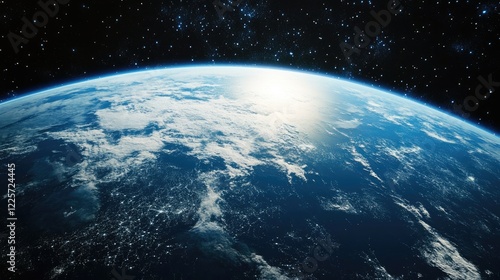 © Ketua, Obraz premium Earth's Blue Horizon with Scattered Clouds and Stars