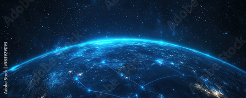 Obraz premium Earth's data streams and digital marketplaces highlighted in wide banners