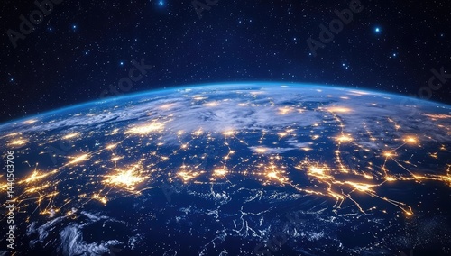 Obraz premium Earth's glowing cityscape at night, viewed from space, showcasing urban...