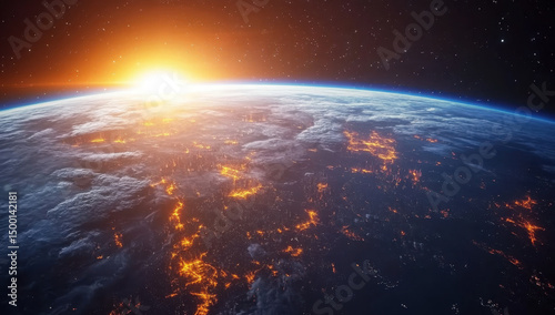 © Lamia, Fototapeta premium Earth's Splendor from Space: Sunrise over Cities