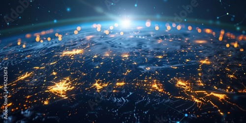 Obraz premium Earth's Surface with City Lights and Network Connections
