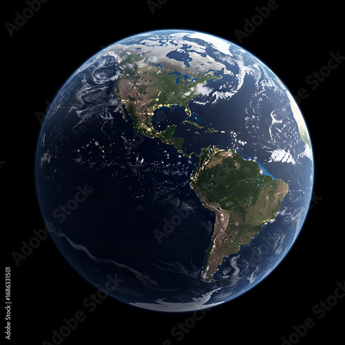Fototapeta premium Earth's Western Hemisphere with detailed continents, displayed from space,...