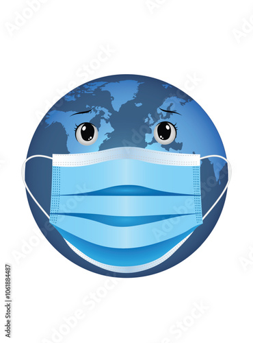 © ArtDawn, Fototapeta premium earth sad eyes with mask vector illustration on white isolated