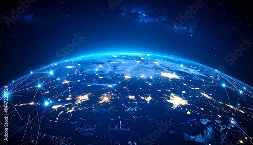 Fototapeta premium Earth seen from space at night network connections and milky way