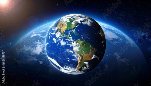 Fototapeta premium Earth seen from space, with a bright sun glare