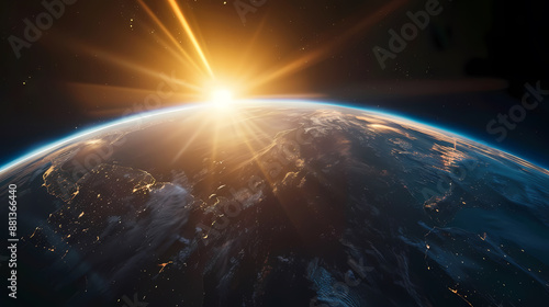 Obraz premium Earth seen from space with the sun rising above