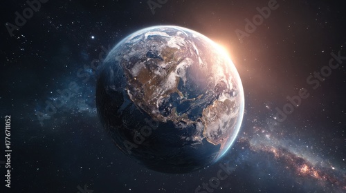 © nameera_jh, Fototapeta premium earth showing city lights and sun-