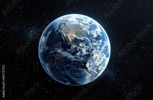 Obraz premium Earth, space, North America, clouds, night, background stars, environmental awareness