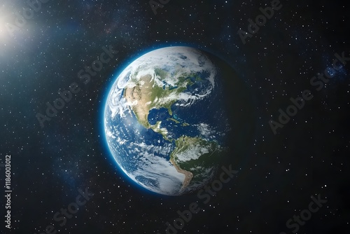 Obraz premium Earth, space, sun, clouds, North America, cosmos, orbiting, planet, background, environment