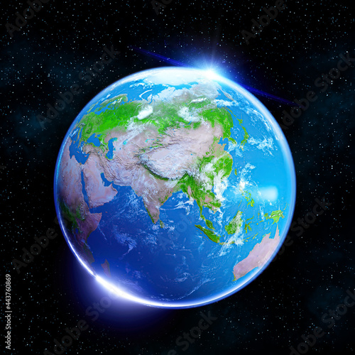© jeffery, Fototapeta premium earth space universe optical flares blue planet