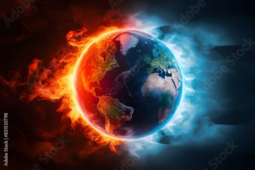 Fototapeta premium Earth split between fire and ice, warmth and cold, destruction and preservation