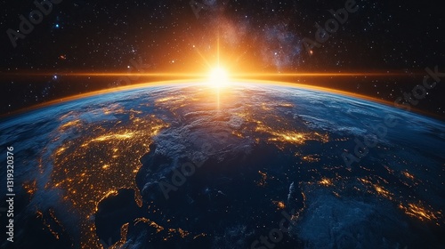© HENNYSURYA, Obraz premium Earth sunrise from space, city lights