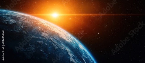 © slametmurtadho, Obraz premium Earth sunrise, space, cosmic background