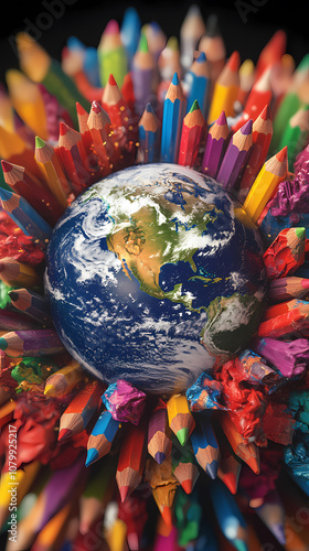 Obraz premium Earth Surrounded by Colorful Pencils