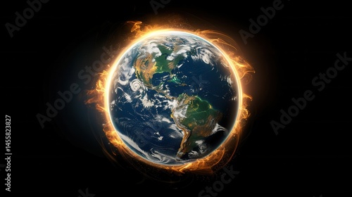 Fototapeta premium Earth Surrounded by Fiery Glow and Dramatic Cosmic Elements