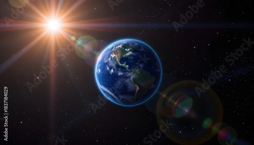 Obraz premium Earth Surrounded by Stars and Illuminated by Sunlight in the Vastness of Space