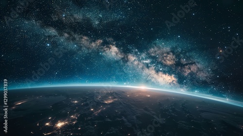 © Prakakrong, Fototapeta premium Earth surrounded by the Milky Way galaxy with