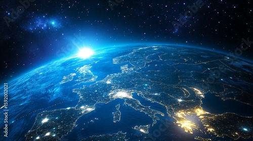Obraz premium Earth View From Space at Night with City Lights and Sunrise