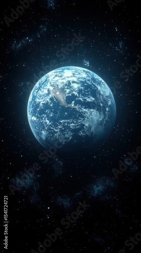 Fototapeta premium Earth View from Space: Blue Planet with Clouds and Continents