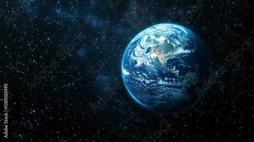 Fototapeta premium Earth view from space, detailed continents, clouds, and starry background