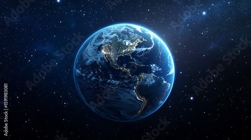 Fototapeta premium Earth View From Space Featuring City Lights and Starry Background