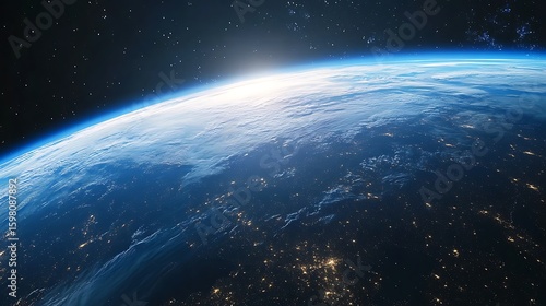 Obraz premium Earth View From Space Showing City Lights and Atmospheric Sunrise