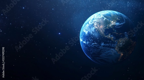 Obraz premium Earth View From Space Showing City Lights and Swirling Clouds