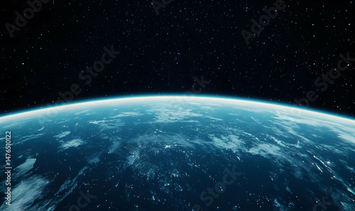 Obraz premium Earth View from Space Showing Ocean and Starry Universe Background