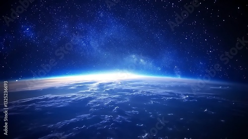 © bima, Fototapeta premium Earth view from space, with light, and stars