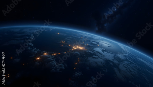 Fototapeta premium Earth viewed from space at night with illuminated cities