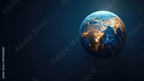 Fototapeta premium Earth viewed from space, illuminated continents on dark background.