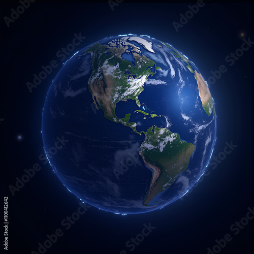 © ArtNeuroNet, Fototapeta premium Earth viewed from space with glowing edges against a dark background